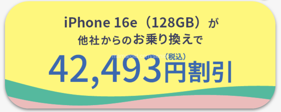 - 割引はMNP(乗り換え)+対象iPhone購入が条件