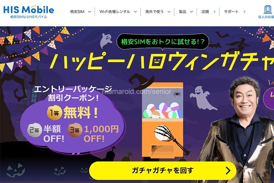 HISモバイルの事務手数料無料のクーポンが当たる、ハッピーハロウィンガチャキャンペーンで無料クーポンが当たったので、乗り換えようと思います。そこでHISモバイルについて詳しく調べてみました。