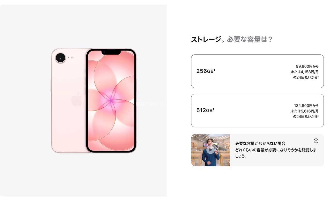 Apple の公式ストアでは、iPhone17eは次の価格で販売されています。