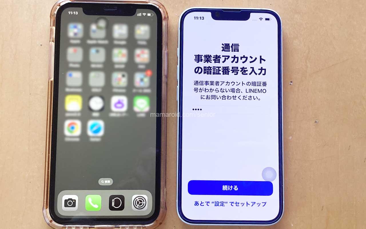 - 古いiPhoneと新しいiPhoneを並べて置く