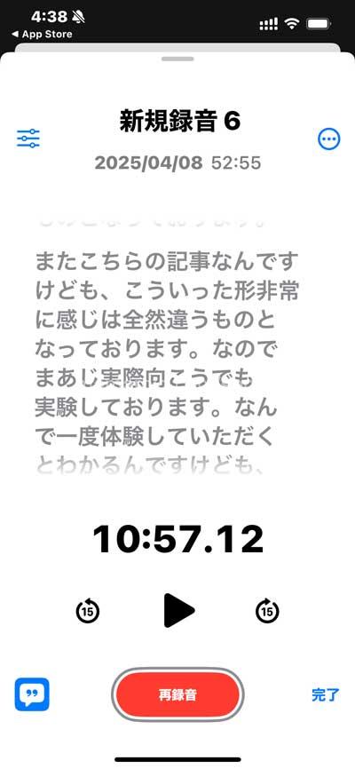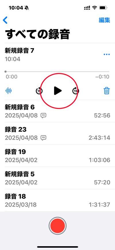 保存された録音をタップし、再生ボタンを押すと聞くことができます。