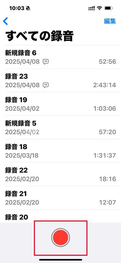 画面下の赤い丸いボタン(録音ボタン)をタップすると、すぐに録音が始まります。