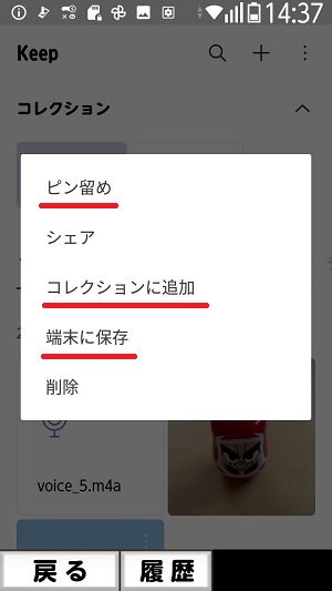 削除されてほしくないものは、「Keepメモ(キープメモ)」から飛べる「keep」のメニューから「端末に保存」「ピン留め」「コレクションに追加」すれば、期間制限なく保存することができます。(後半に詳しく説明しています)