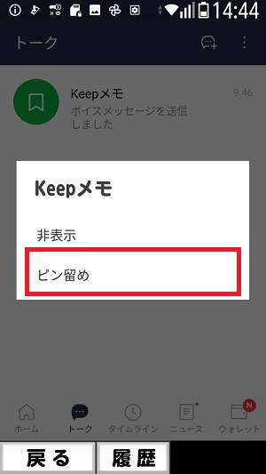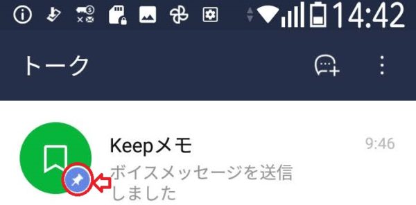 1. トーク一覧の「Keepメモ」を指で2秒くらい長押しします。