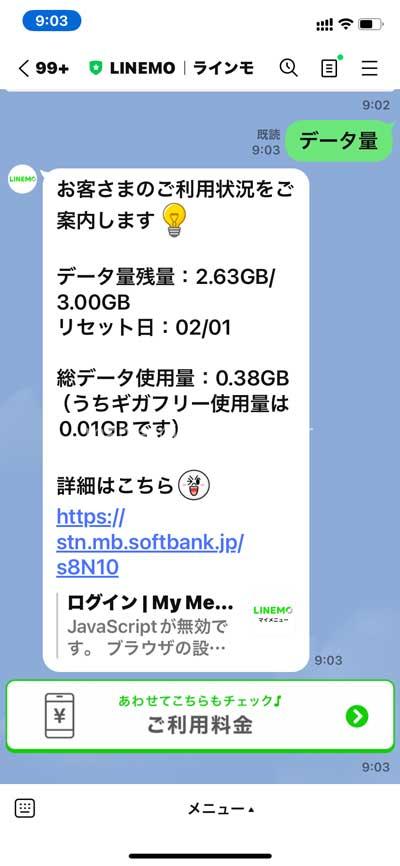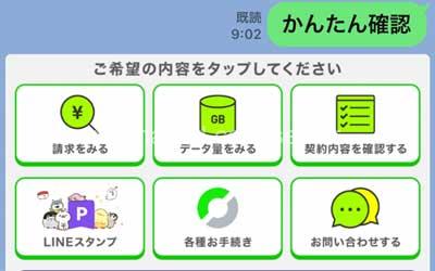- LINEアプリ内でデータ残量や請求金額を手軽に確認できる