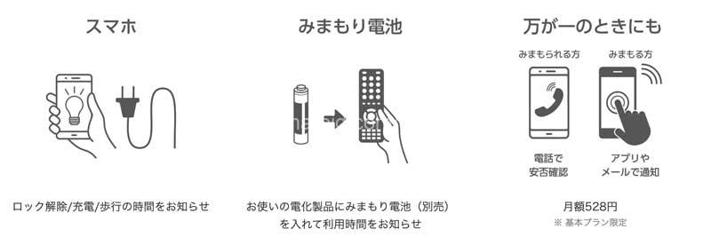 - 別売りの「みまもり電池」を使えば、家電製品(照明やリモコンなど)の使用状況もチェック可能。