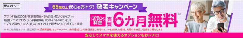 敬老キャンペーンと最強シニアプログラムは併用可能です。さらに、公式FAQによれば「最強シニアプログラム」は他のキャンペーンとも併用可能と明記されています。「初めて申し込みと最強シニアプログラム加入で20GBまで実質6カ月無料」キャンペーンも適用されます。