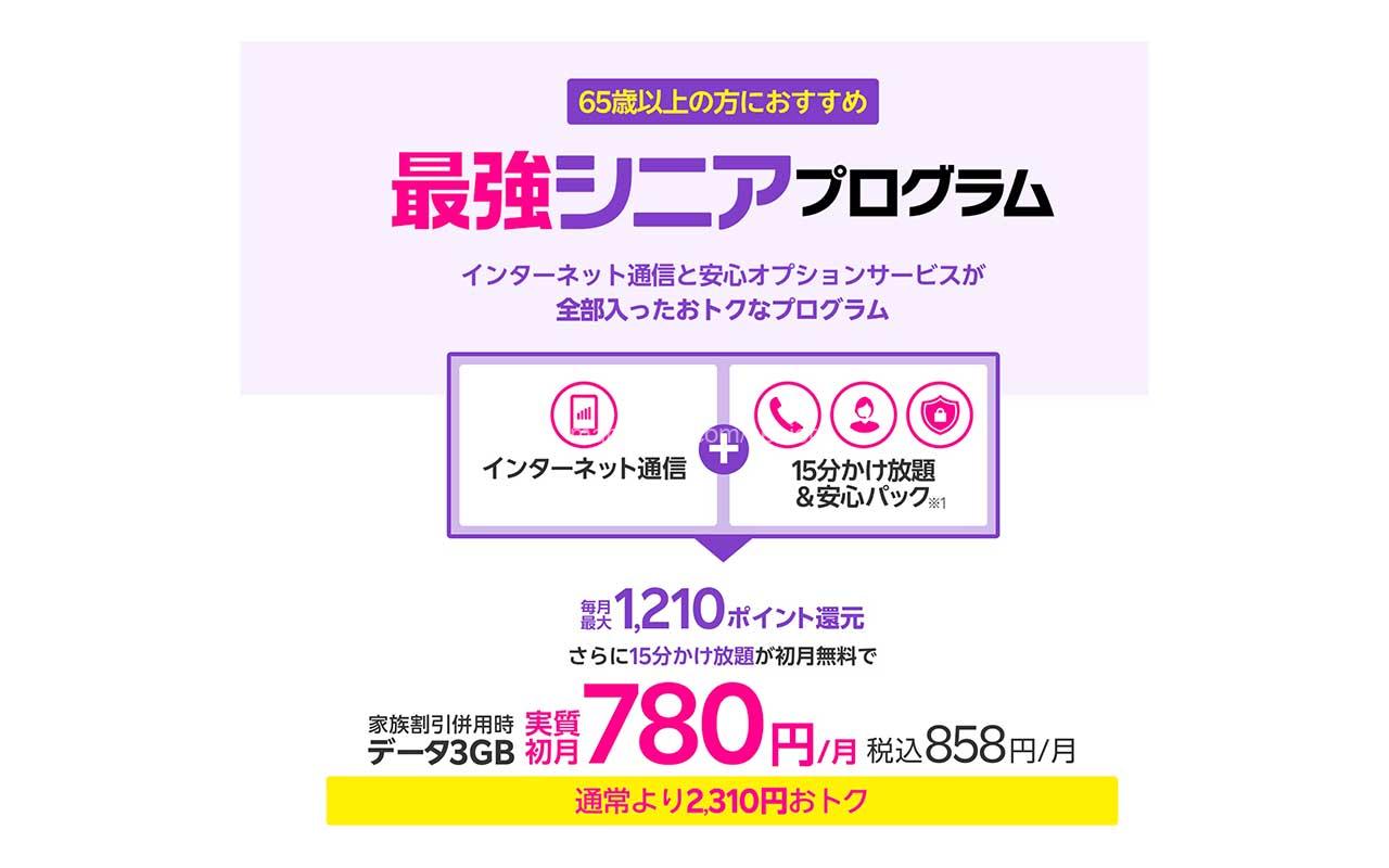 大手キャリアで高額な月額料金を支払っている65歳以上の方に最適です。