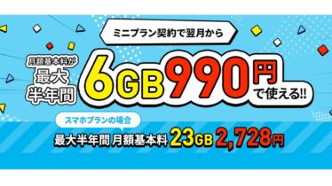 LINEMOミニプランに乗り換えで半年間6GB:990円/月が実質無料