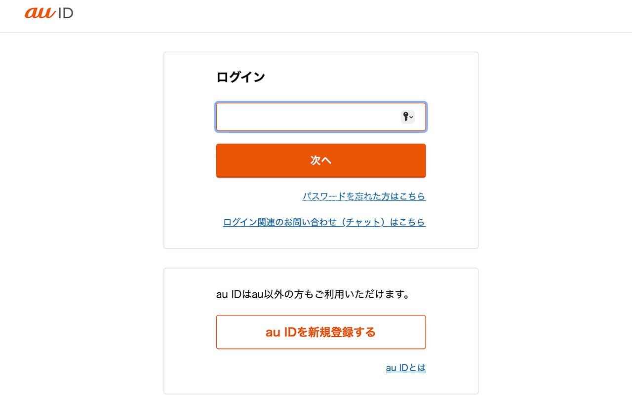 次にau IDでのログインを求められます。必要に応じて、後からIDを統合することもできるので、とりあえず新規で登録しました。