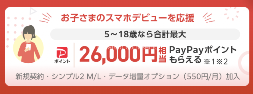 \\ワイモバイルYahoo!店なら5〜18歳なら26,000円相当がもらえる!//
