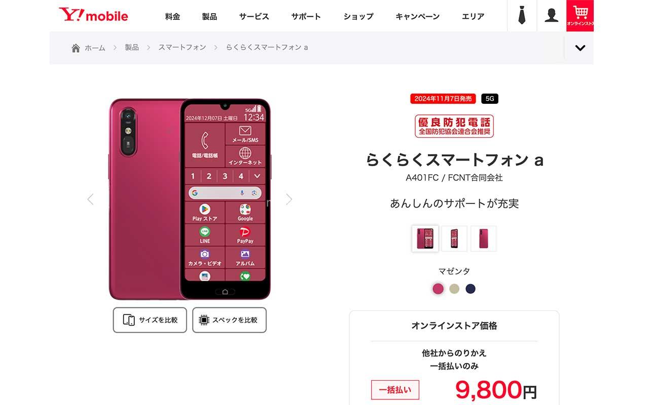 ワイモバイルの最新機種「らくらくスマートフォン a」が、なんと9800円!らくらくスマホの買い替えを考えている方には嬉しい価格です。詳細を確認しましょう。