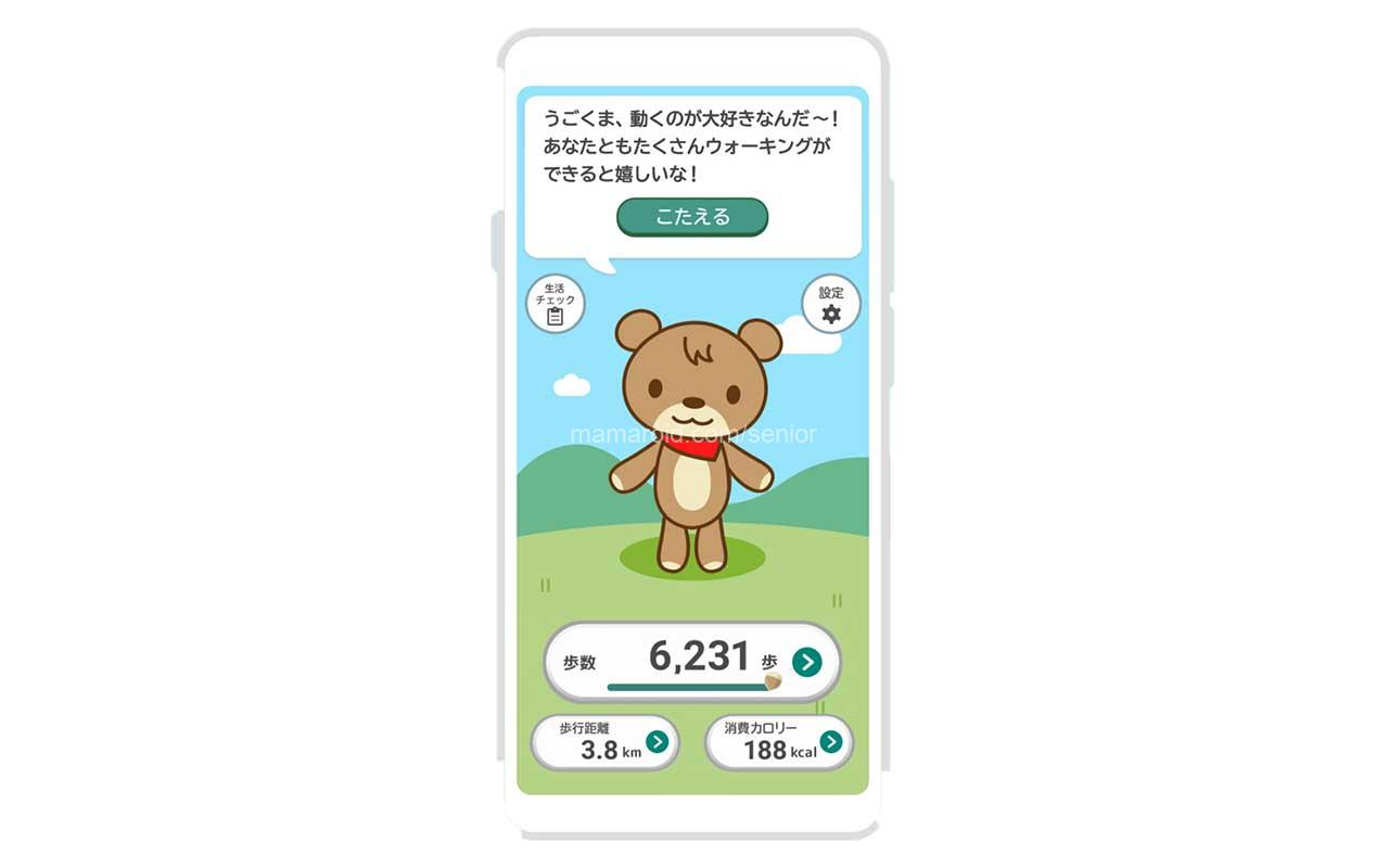 健康管理では、「かんたんHELPO」というアプリを使って、医療の専門家に健康について相談できます。また、「うごくま」という歩数計アプリで毎日の運動を楽しく続けられます。